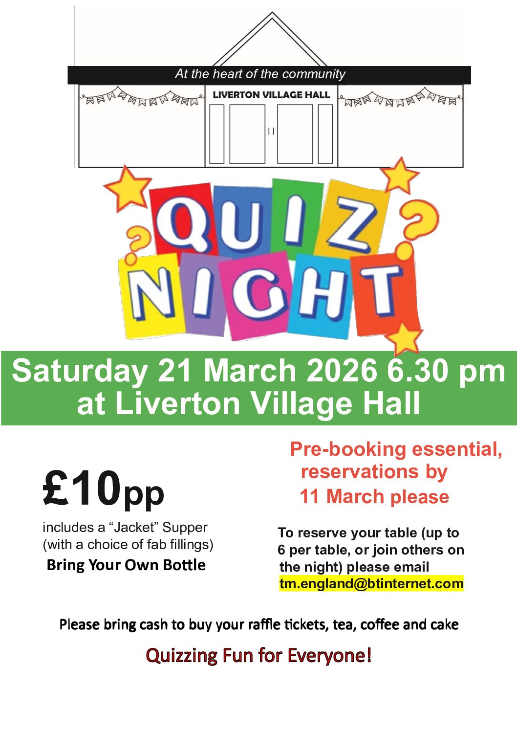 Quiz Night 21st March 2026 @ 6.30pm by Tina | Jan 9, 2026 | Uncategorized | 0 comments Book your table now for our quiz in March!! Submit a Comment Cancel replyYour email address will not be published. Required fields are marked *Comment * Name * Email * Website Save my name, email, and website in this browser for the next time I comment.